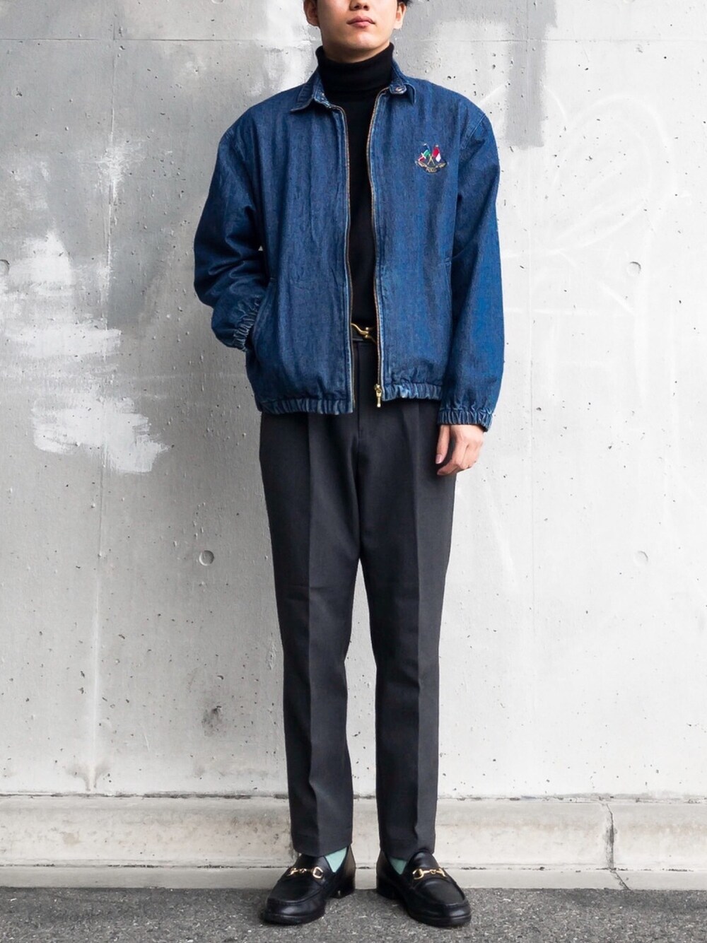 古着ミックスコーデ タートルネックニットをタックインしたり、 スラックスと合わす事でかなりキレイめな コーデになる所に古着のデニムブルゾンを羽織り バランスを取りました🤞🏻 靴下もブルゾンと同じ同系色の淡いもので 合わせることで初春感が出ます👍🏻 是非、いいね、フォロー、コメントをよろしくお願いします🙏🏻