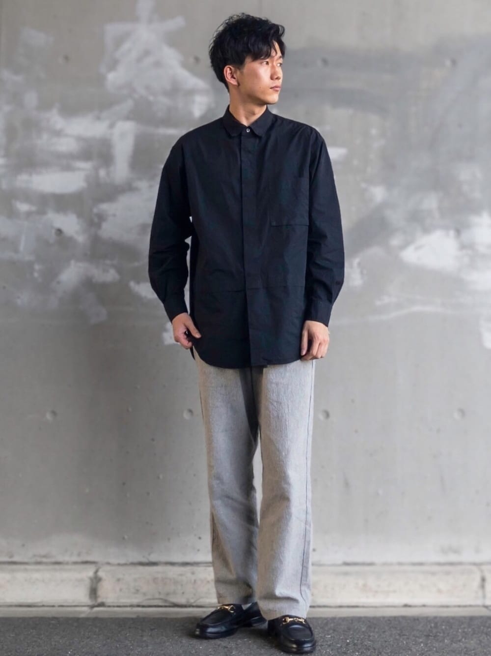 モード×カジュアル +Jのモード感溢れるシャツを敢えてリネンコットンの素材感溢れるパンツと合わせるスタイル モノトーンだから成り立っている感🤔 ボトムスに白のニットリブパンツを合わせたら目を当てられないスタイルになってしまうという。 各種SNSのいいね、フォロー、コメントをよろしくお願いします🙏🏻I'm waiting for your good and follow,comment👍🏻