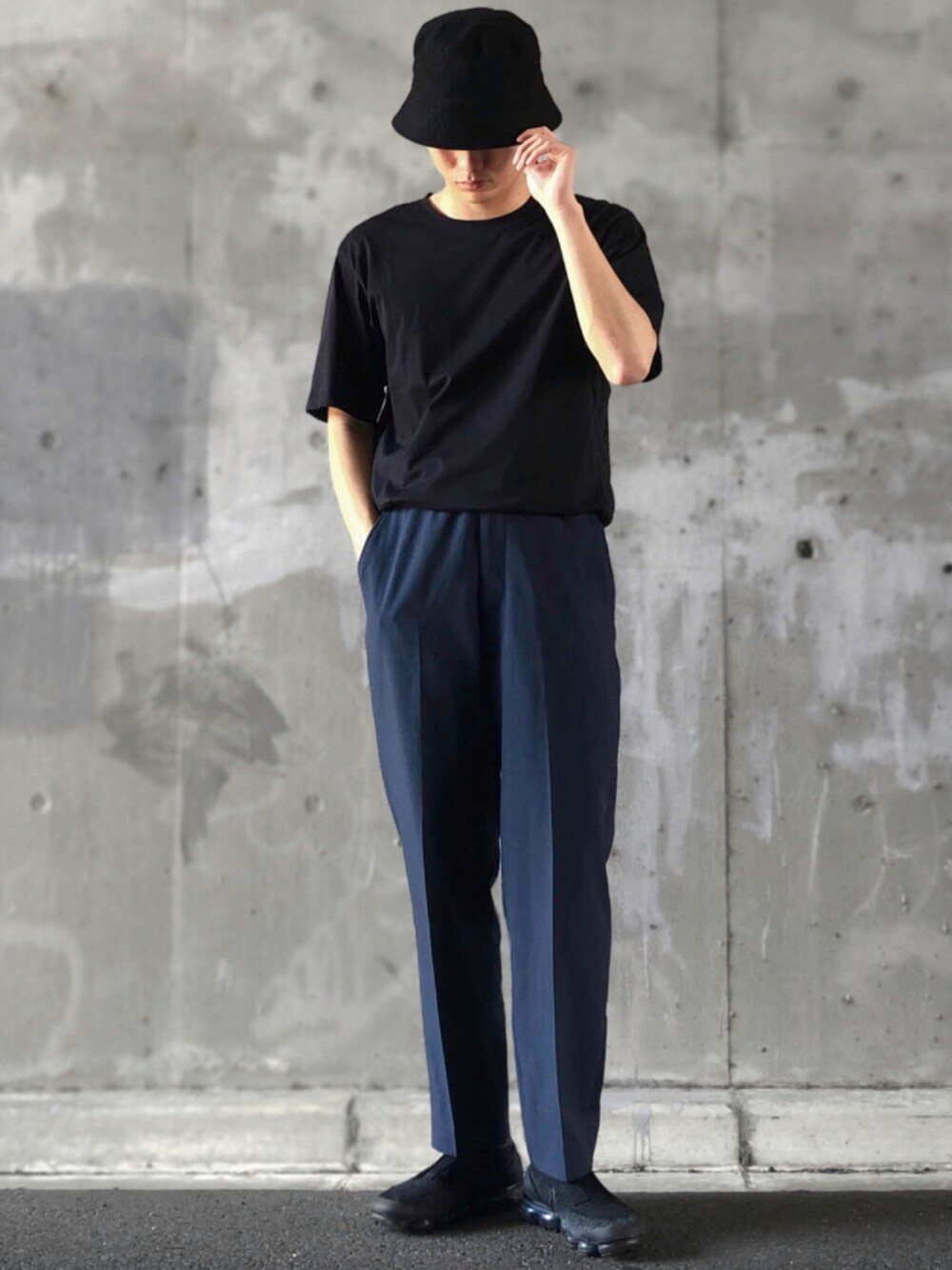落ち着いたトーンでまとめたコーデ 色が落ち着いている分、Tシャツやスニーカーで ラフに合わせても野暮ったさが無い印象