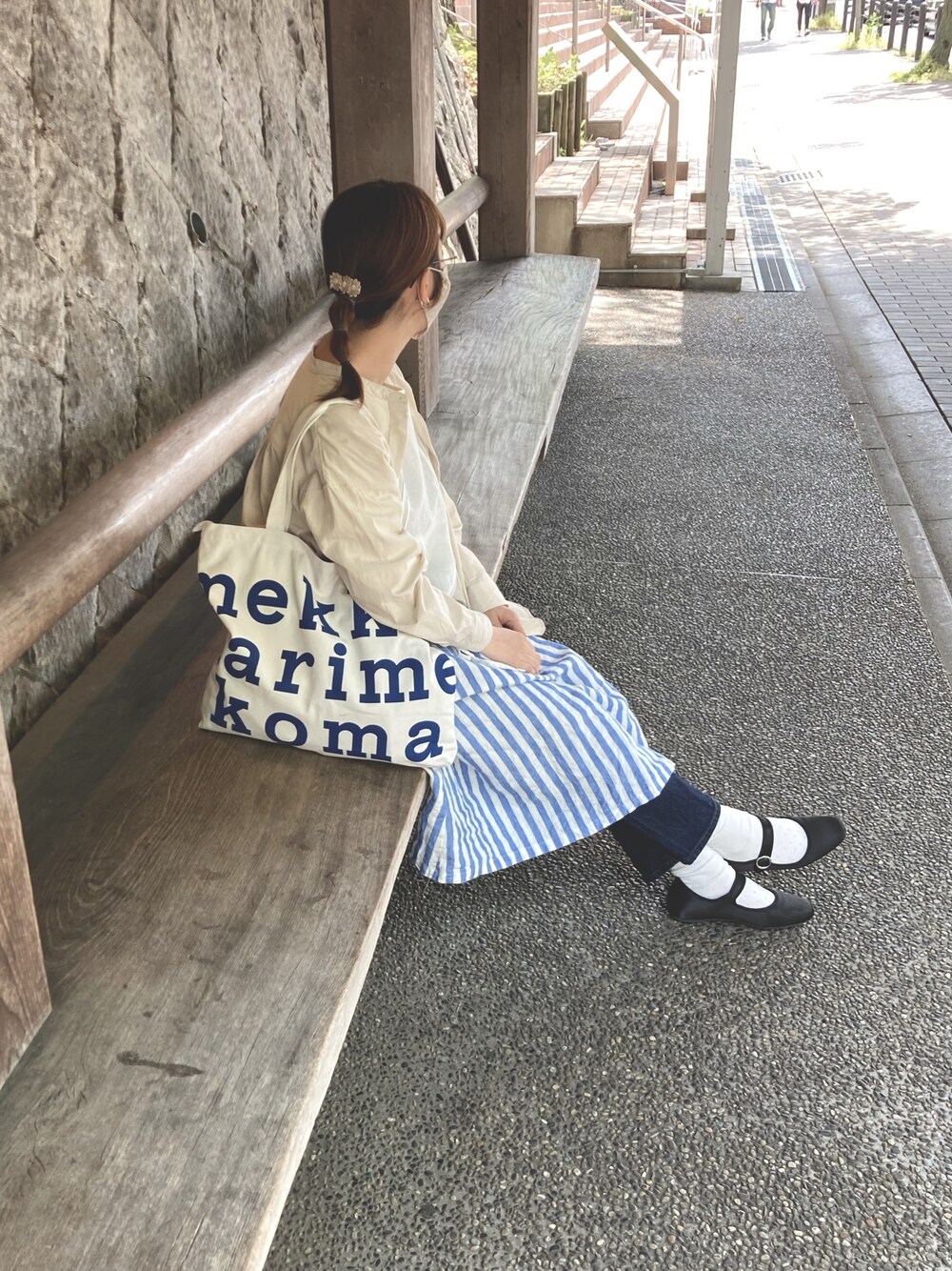 バス待ちです。一応! このStudioclipのシャツワンピが 可愛くてお勧め.ˬ.