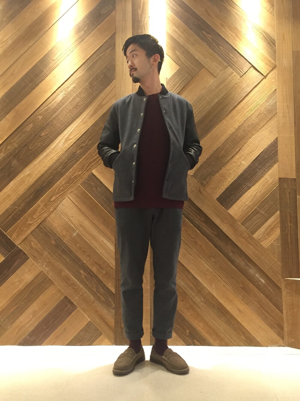 outer FREAK'S STORE サーモライト レザースタジャン FREAK'S STORE コットンカシミヤガータープルオーバー pants VINCENT ET MIREILLE 別注モールスキンパンツ shoes CAMINANDO 別注エアソールローファー
