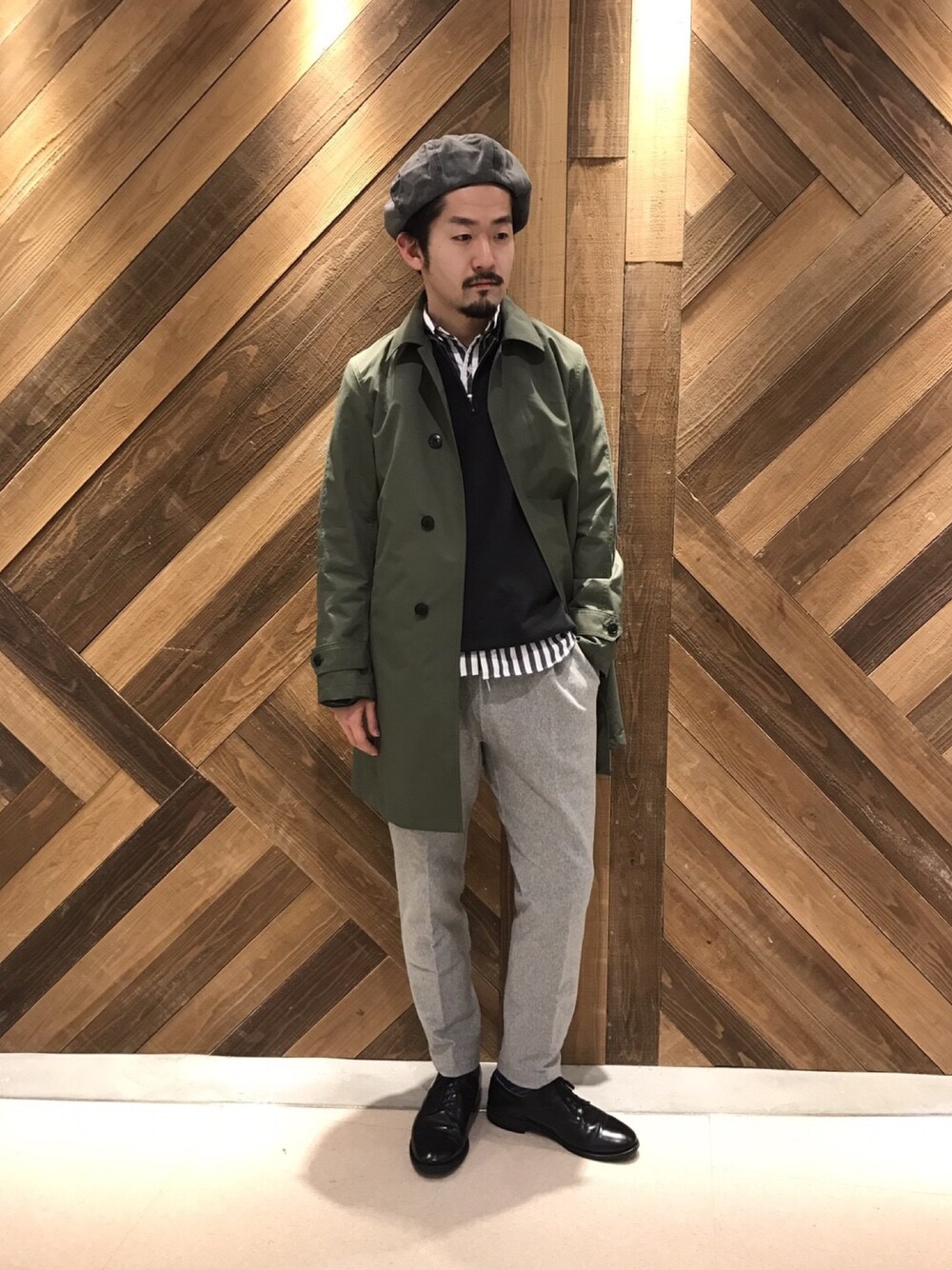 outer FREAK'S STORE PARTEXステンカラーコート inner FREAK'S STORE ハーフジップスウェット shirt FREAK'S STORE ストライプシャツ pants Champion × FREAK'S STORE 別注リバースウィーブ スウェットタック