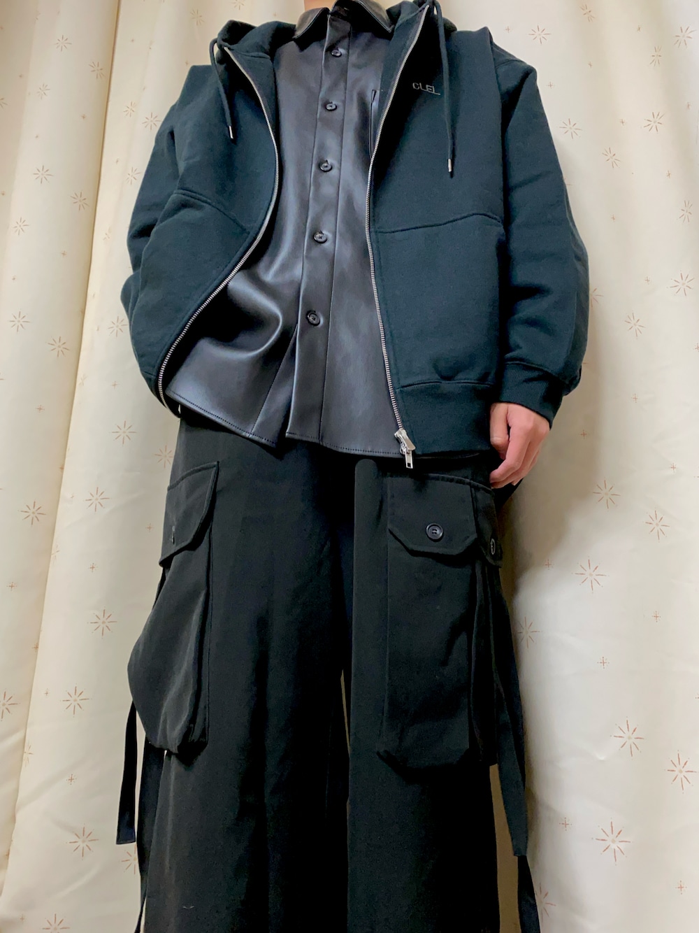 今から鉄板焼き屋さんに行くので、汚れが目立たないオールブラックで