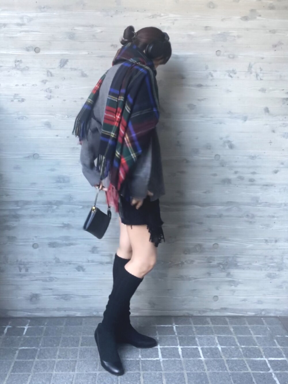 mashuのストール/ショール「Johnstons / ジョンストンズ:<CASHMERE TARTAN STOLES(190×70)>-BLACK STEWART-:KU0324-WA56[ANN]」を使ったコーディネート
