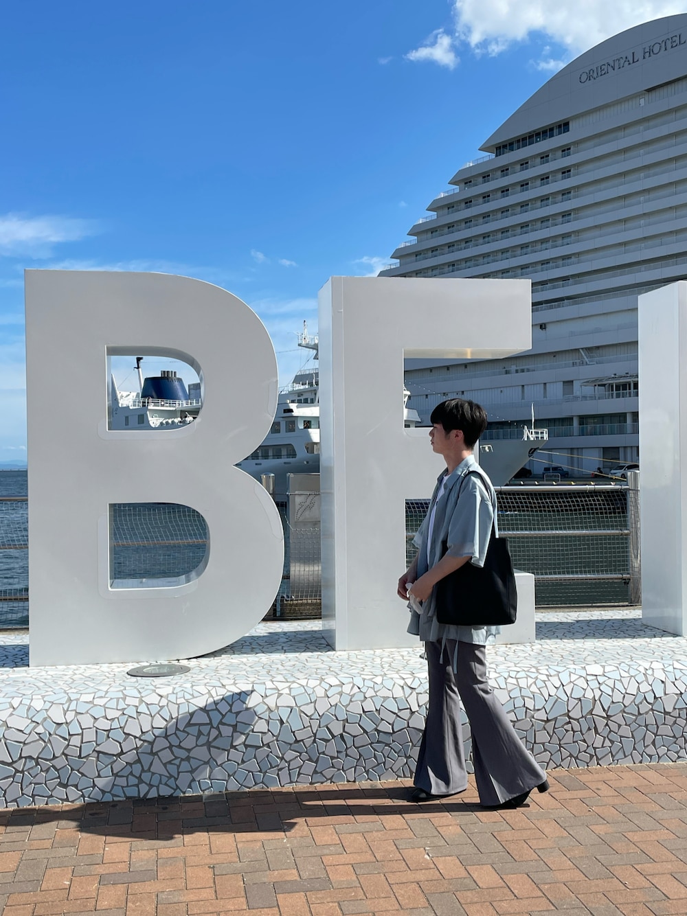 初神戸行った時のコーデ 雨予報で着るの諦めたけど着れた この服たち全方向からのシルエットが良き バッグもHAREのですが貰ったためどれか分からなかったです