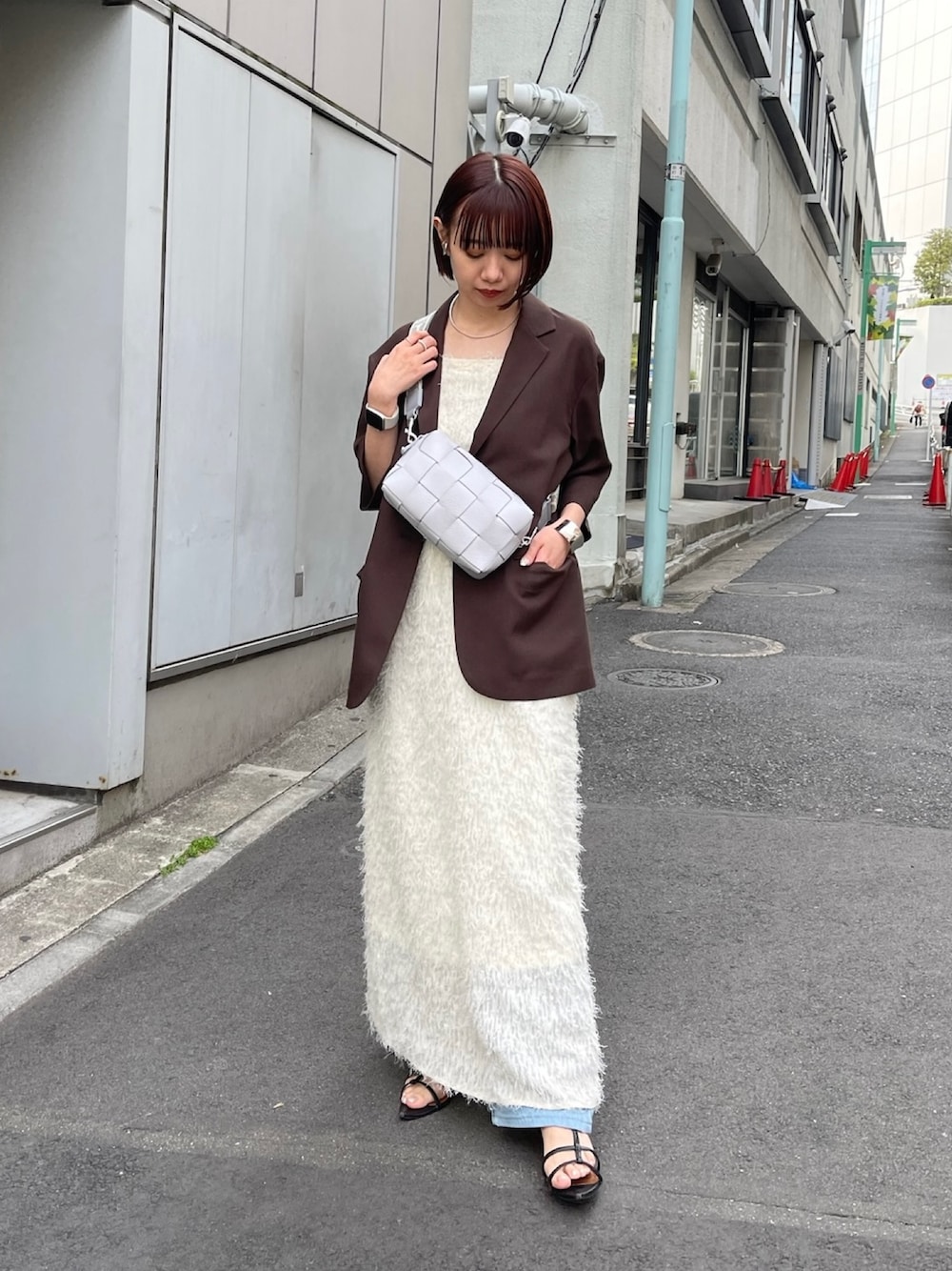 minori(IACUCCI)のワンピース「ヘアリージャガードバッククロスキャミワンピース」を使ったコーディネート