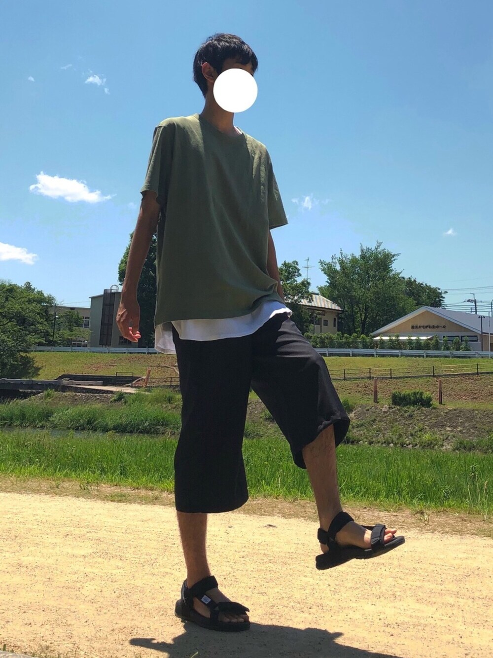 見て頂きありがとうございます! ガウチョパンツ履いてみましたー!すごく涼しいし、履きやすくて大満足です!サンダルと合わせるとさらに夏らしくなりいいですね😊