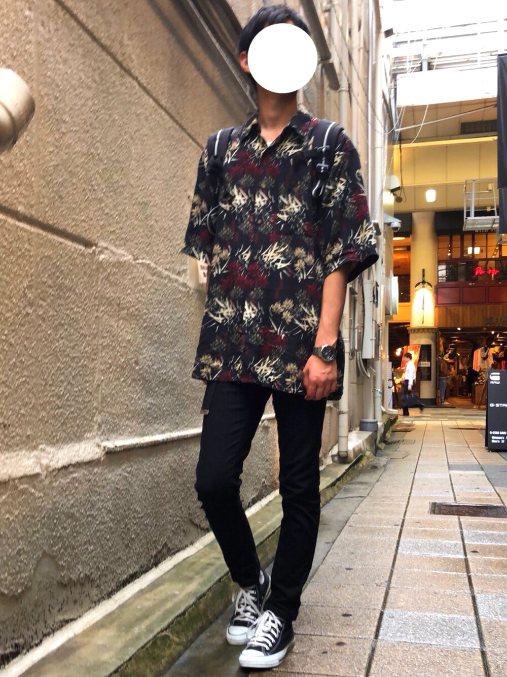 いつも閲覧、いいね、フォローありがとうございます! 今日は古着の柄シャツを黒スキニーと合わせました! この柄シャツのデザイン好きです😊