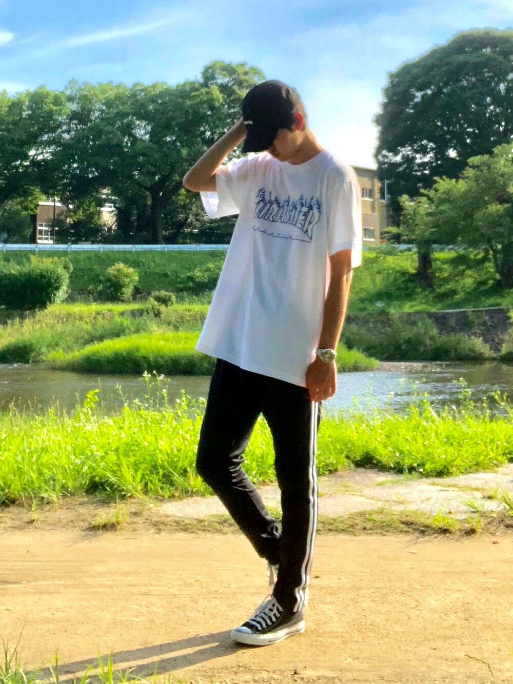 いつもいいね、フォローありがとうございます! 今日はスラッシャーのキャップ、 tシャツを使ったストリートコーデ!ラインパンツとの相性すごくいいです!