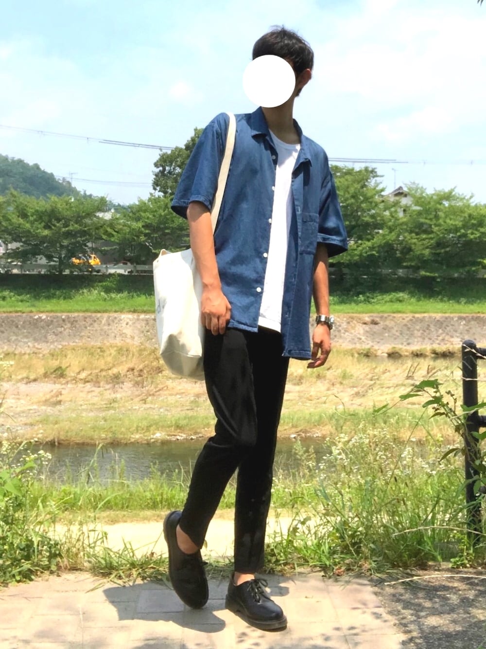 いつもいいね、フォローありがとうございます! 今日はデニムオープンカラーシャツ! トートバッグと合わせました! アンクルスラックスと革靴の組み合わせもとても良いです😊