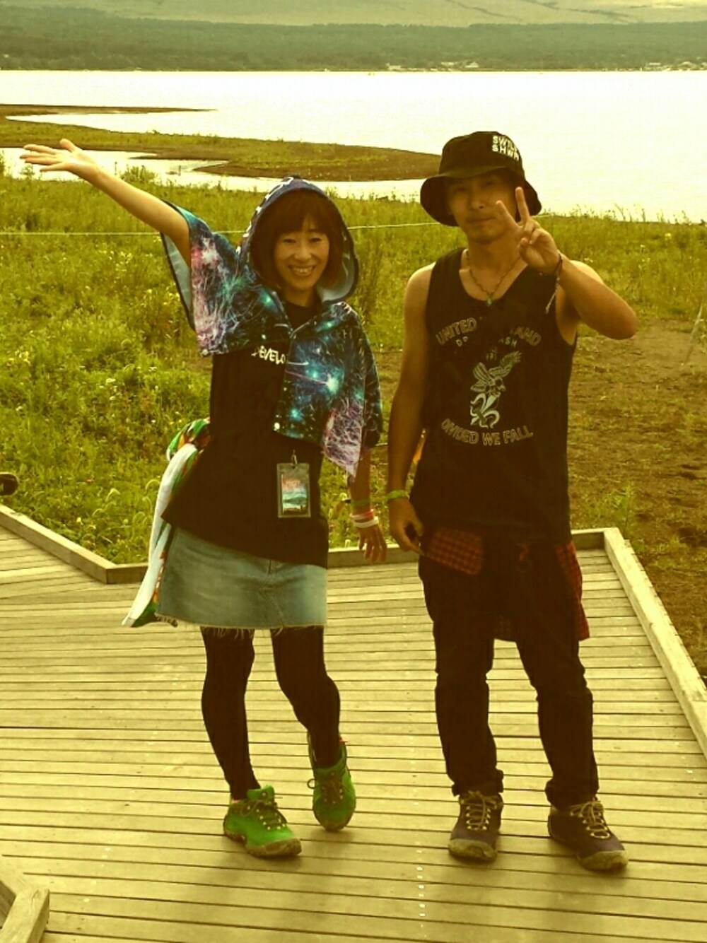 ハット:CA4LA シューズ:MERRELL 一汗かいて、着替えて、第2戦開始! 山中湖は寒かった、、