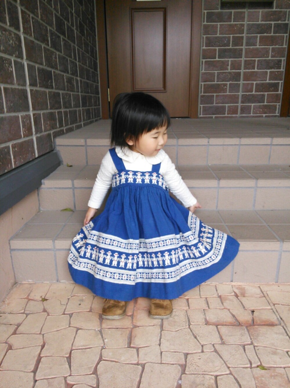 嫁が古着のスカートをワンピースにしたそうです(*´∀`)