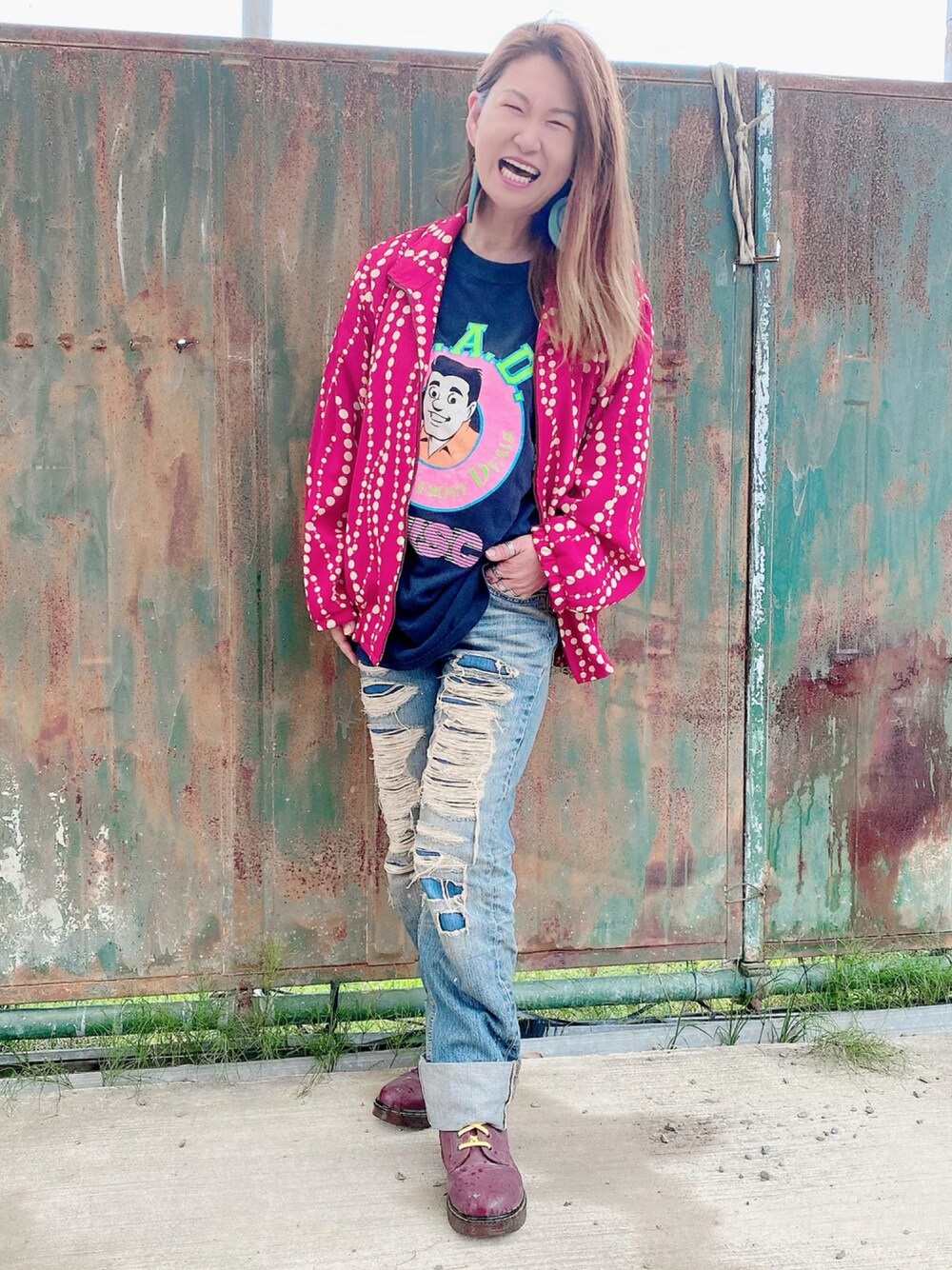 こんにちは🌹💫 お天気がよろしくない🥲 今日はプリントTだよ〜🥰 今日のコーデは古着だよ〜👍 古着屋巡りしたーい🥰 色々掘り出し物見つけたいなぁー😘 早くその日が来るのを待ってる♥️ ビビットな赤のドット柄が可愛い💓 リーバイスの👖ジーンズは私のお気に入り👍ダメージ加工が好きです💓 いつもいいねありがとう♥️