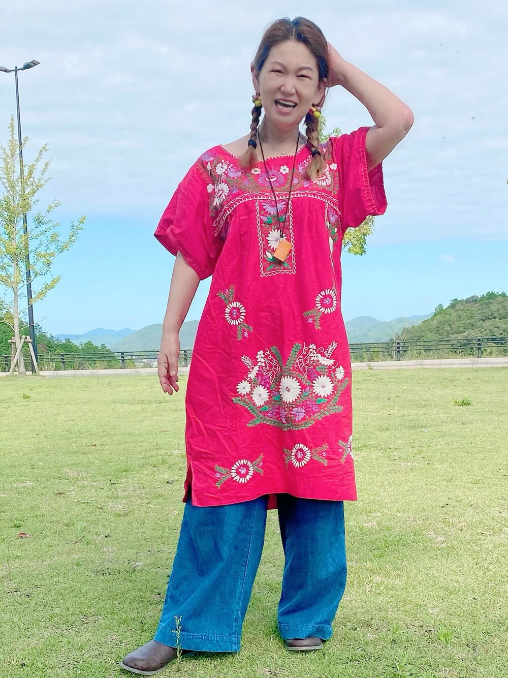 こんばんは🌃 今日はいいお天気でしたね🍀 コーデですが三つ編みしてみました〜♥️ ワイドデニムに赤いトップスを合わせました😆 いつもありがとうございます🍀