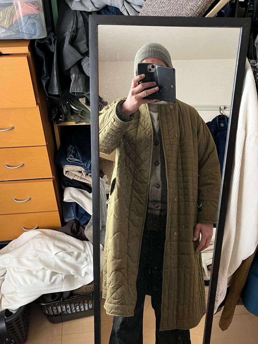 真冬の寒さに逆戻り インナーにはdropzone cardigan gas protect coatを羽織って