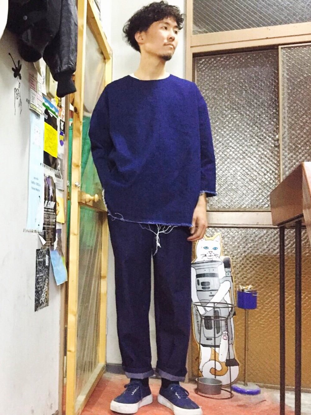 デニムonデニムってなんか好きでこんなんなりました。 着ているものは仙台でハンドメイドで服を作っているブランドCAMERA OBSCURAです。 オールネイビーとかオールなんちゃらとかそういうのっていいですよね。