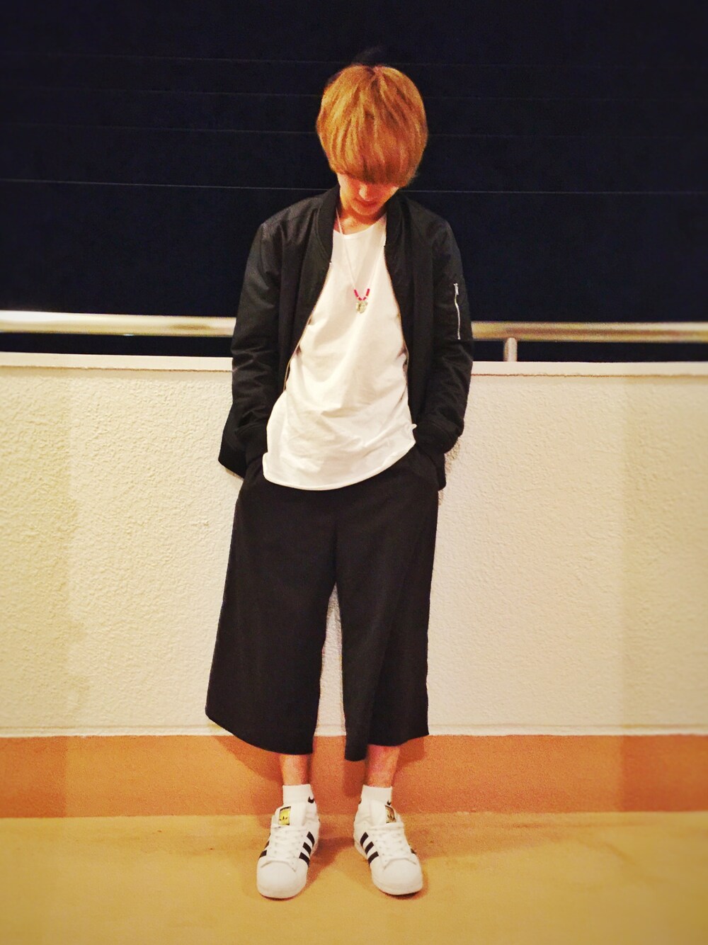 こんばんは!遅めの投稿です😭 朝から晴天!のはずが、、夕方からどしゃぶり🌧 磨いたばっかりのsuperstarがやられました、、 今日はモノトーンでまとめました 中はrageblueのTシャツにシルエットが カッチリめの のma-1羽織りました😎 このma-1はリバーシブル💯着回し最高です。 下はガウチョでゆったりさせて 足元はnike×adidas! この組み合わせ好きですね✌️ 明日も元気に頑張りましょう! insta(@massi0.28)もよかったらお願いします✋