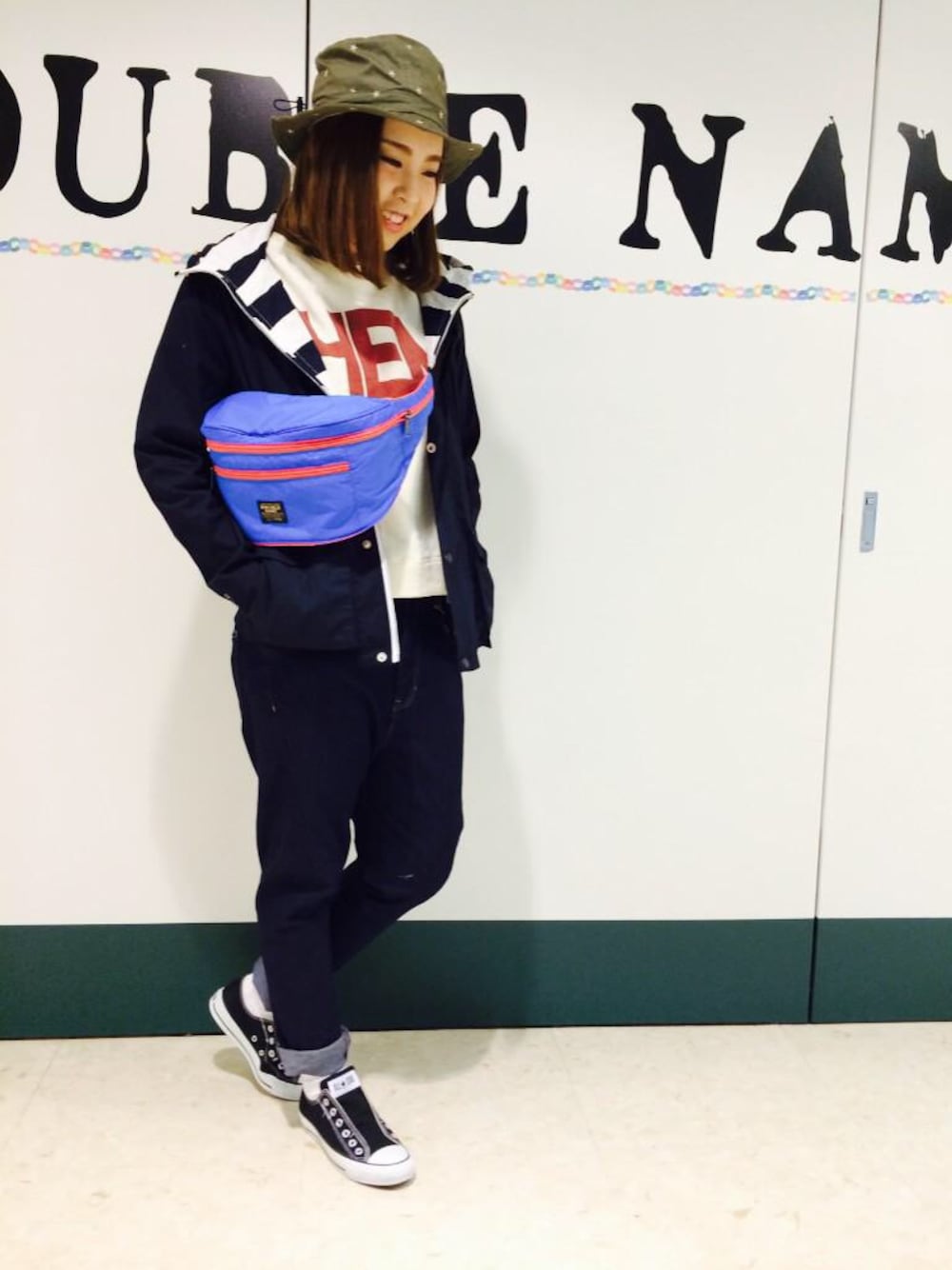 バケットハットにボディバッグ持ったら アウトドアなことしたくなりますよね〜🌞 このマウンテンパーカーは ダブルネームお得意のリバーシブルです〜 これ着てお出かけしましょ〜(^○^)