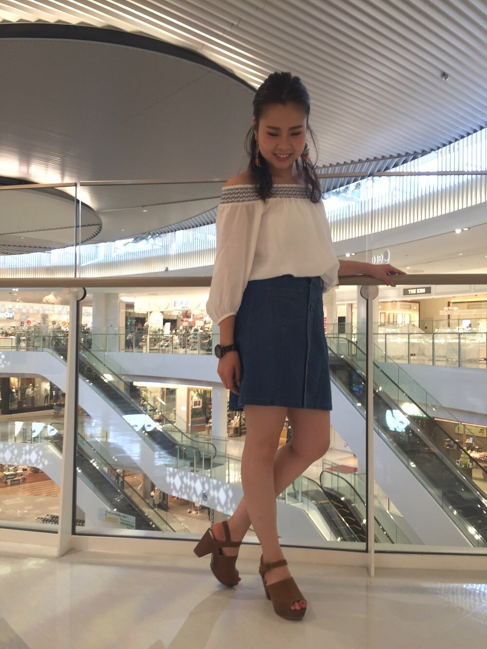 珍しくガーリーに🙋🏼 オフショルブラウスはヘビーローテーションです♡ 略してヘビロテ♡