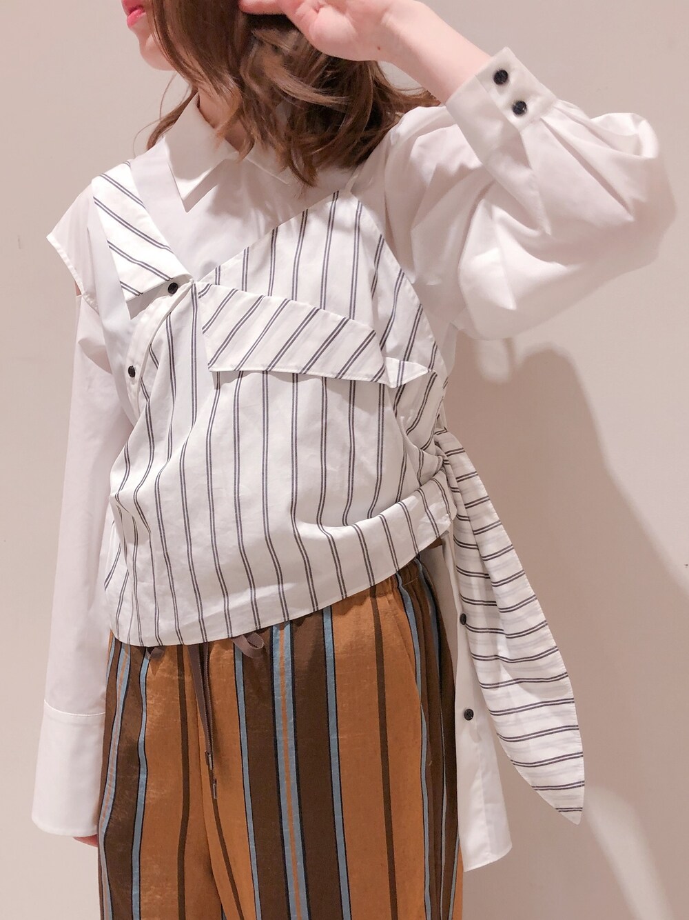 massyのシャツ/ブラウス「【AULA】ストライプキャミソールコンビネーションシャツ」を使ったコーディネート