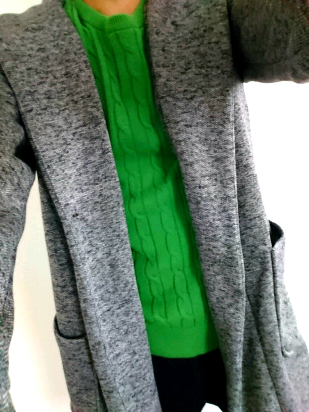 秋なのでレディースのロングが柔らかめで着やすくこの秋物でゲット。グリーンのミドルニットがカジュアルな印象で明るい気分にさせてくれます。