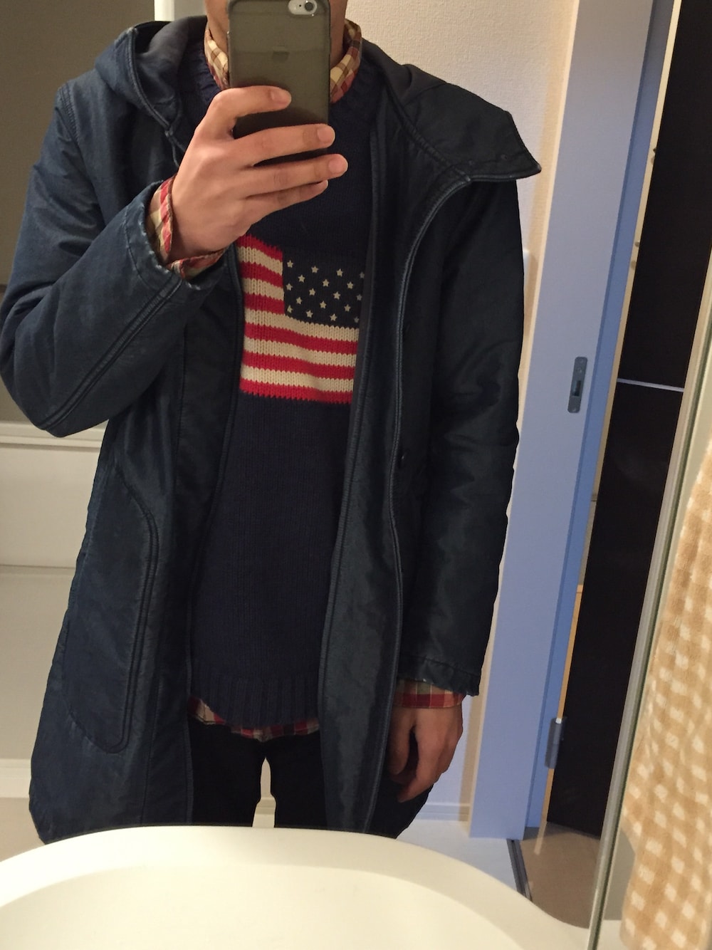 シャツ、ニット、スニーカーの色合わせ。 インナーが全てコットンなのでとても寒かったです(涙目)