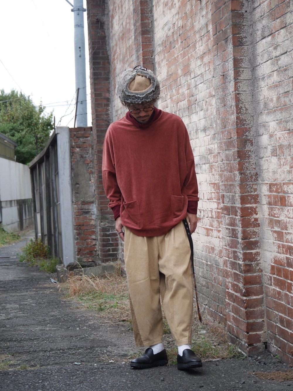 コーデュロイ風のストレッチ別珍と 2種類のコーデュロイをミックスした ワイドパンツに古着のネクタイをリメイクしたベルトをアクセントにしました🌟 ファーキャップも使えるアイテムですよー💂♀️