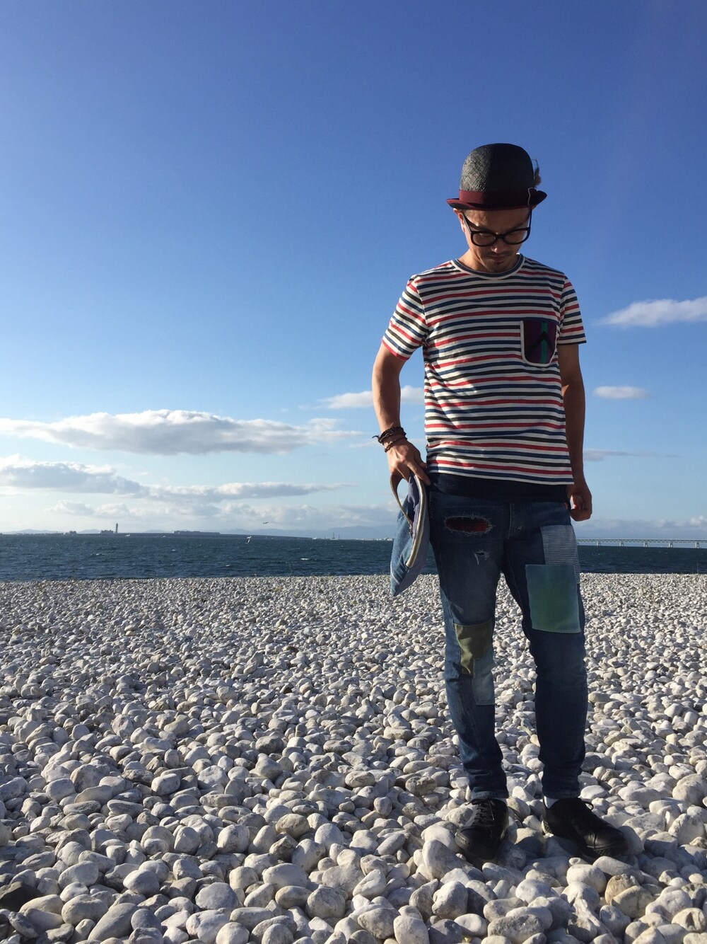 海岸と言えばボーダーでしょー🏊 と言う事でボーダーポケットT。 実はPK部分はvintageのガウンを使用している為全て柄が違うのよ〜✨ 一点物感好きです❤︎ #最近ボボボのブ太郎が黄色いインクを食べるみたいなので注意して下さい☻