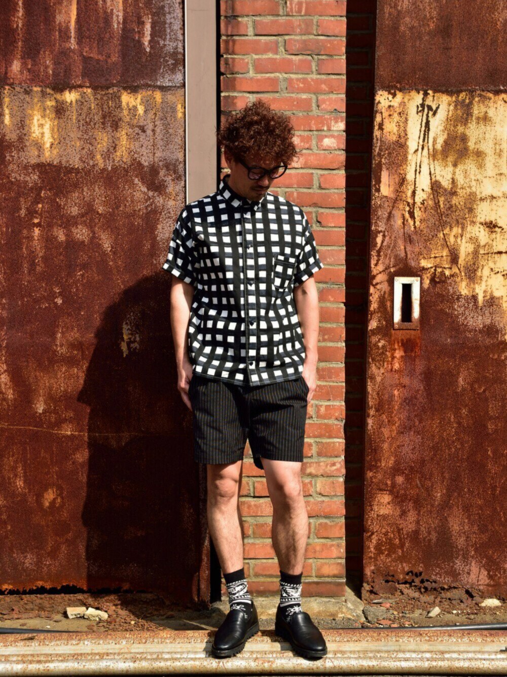 蒸し暑いデス💦 ジムに行って帰りにチョコアイスと菓子パンを買って食べるという……😭 でも美味しかったから、良しとします🙋 手書き風Check Shirts+ Trousers風Shortsです。 ★Shirsは張り感の有るcotton100%生地で ビッグシルエットなので、暑苦しさも無く夏に使えるヤツです🎐 ★Shortsはストレッチ素材で、写真では分かりにくいですがピンストライプです。 少しワイドシルエットになっており えー感じに上品なshortsデス😋