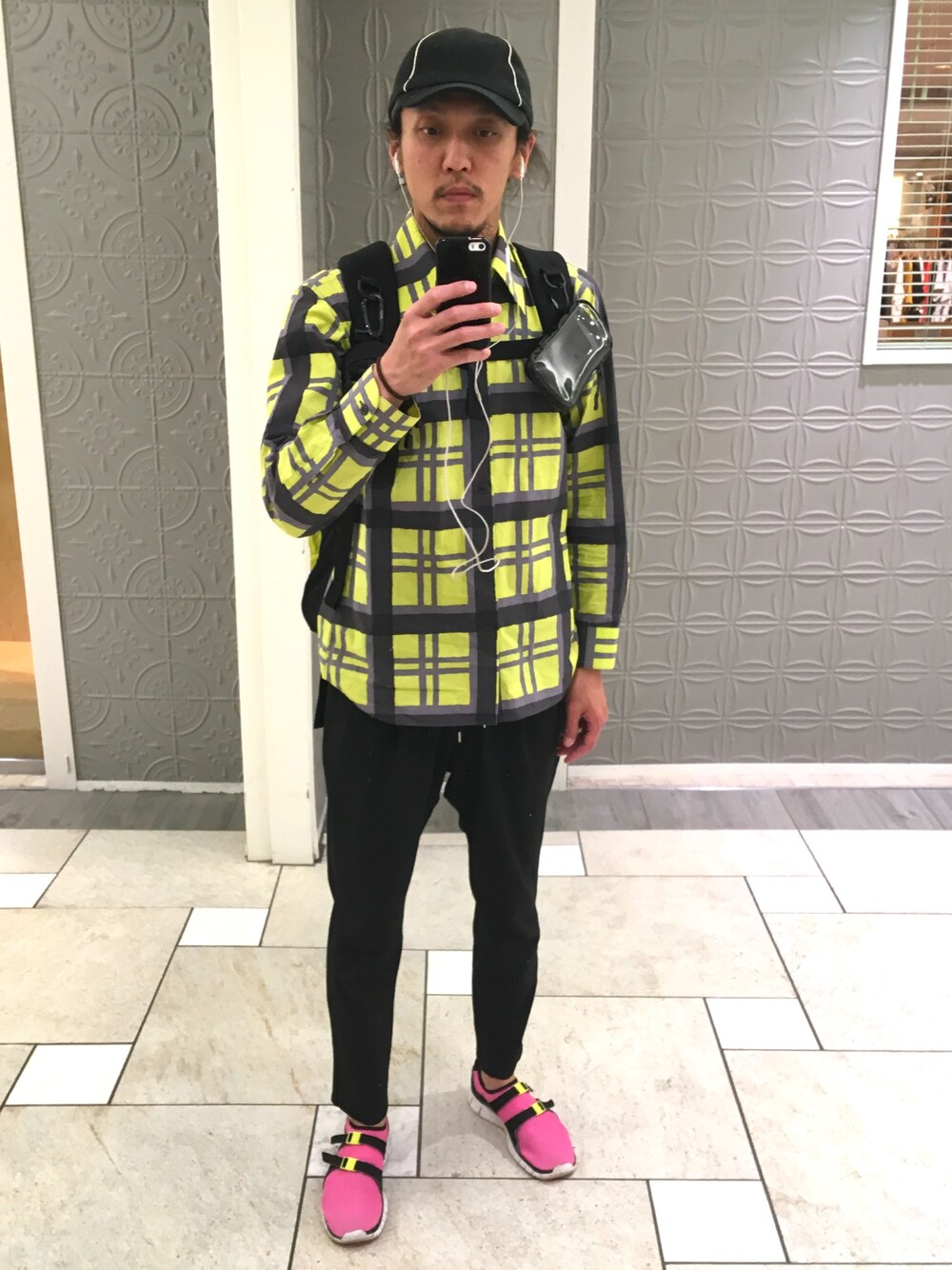 今日は普段よりも歩く予定だったので、歩きやすさを重視しました🌟 配色もブラックとイエローが強くなったので、スニーカーにピンクを入れました🌸