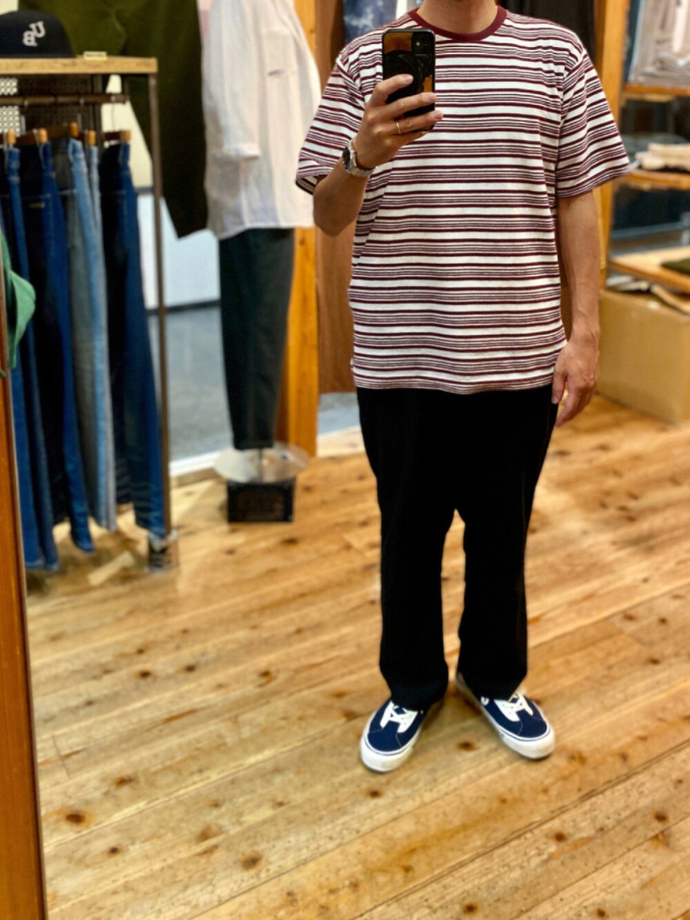 《RECOMMEND》 おはようございます。 ご覧いただきありがとうございます。 8分丈のワイドパンツの新色が入荷しました。 リネンとレーヨンの混合になりますので、 これからの季節に涼しく履けるアイテムです。 ショーツが苦手な方の夏時期に重宝します。 サンダルとの相性も抜群です。 汗ばむ季節に混合リネンのサラッとしたシャリ感、緩めシルエットが動きやすくライトな質感が心地良いです。 定番ブラックはコーディネートの幅を広げてくれます。様々な着こなしに対応できるので、一本持っておくと便利です。 流行りの緩いサイズ感が今季のトレンドに。 バックポケットは深めなので長財布もすっぽりと収まるので安心です。 ロールアップしてアレンジするのも良い感じです。 BRAND:U.S.boarder COLOR:Black SIZE: M , L , XL , XXL *着用写真はトップス、パンツ共にXLサイズになります。身長は172cmの体重70kgです。 ○U.S.BOARDER KIXX 京都 京都府京都市中京区東大文字町292 寺町詩の小路 1F ☎︎075-213-4630 *阪急電車 京都河原町駅 9番出口から徒歩3分です。 『We are U.S.BOARDER』 アメリカンカジュアルを基調とした商品デザインはシンプル且つベーシックをコンセプトに商品展開しております。日本国内のオリジナルブランドです。