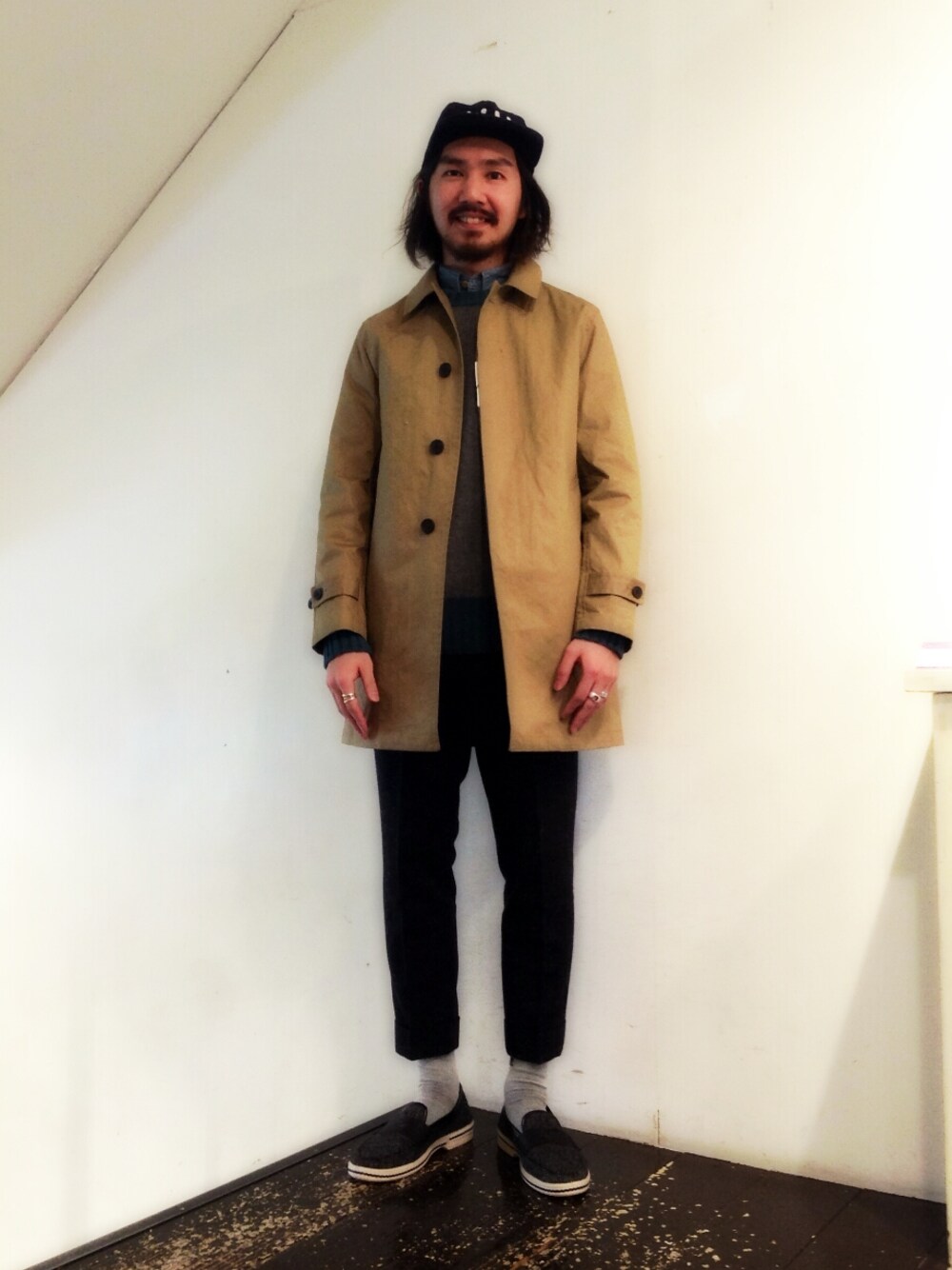 ロング丈と、パンツのハンパ丈のアンバランスさが今のコートの着こなし方です