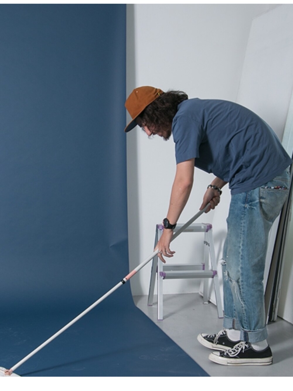 URオンライン撮影スタジオ。モデルのスタイリングも、撮影のディレクションも、掃除もNET長の仕事の一つです