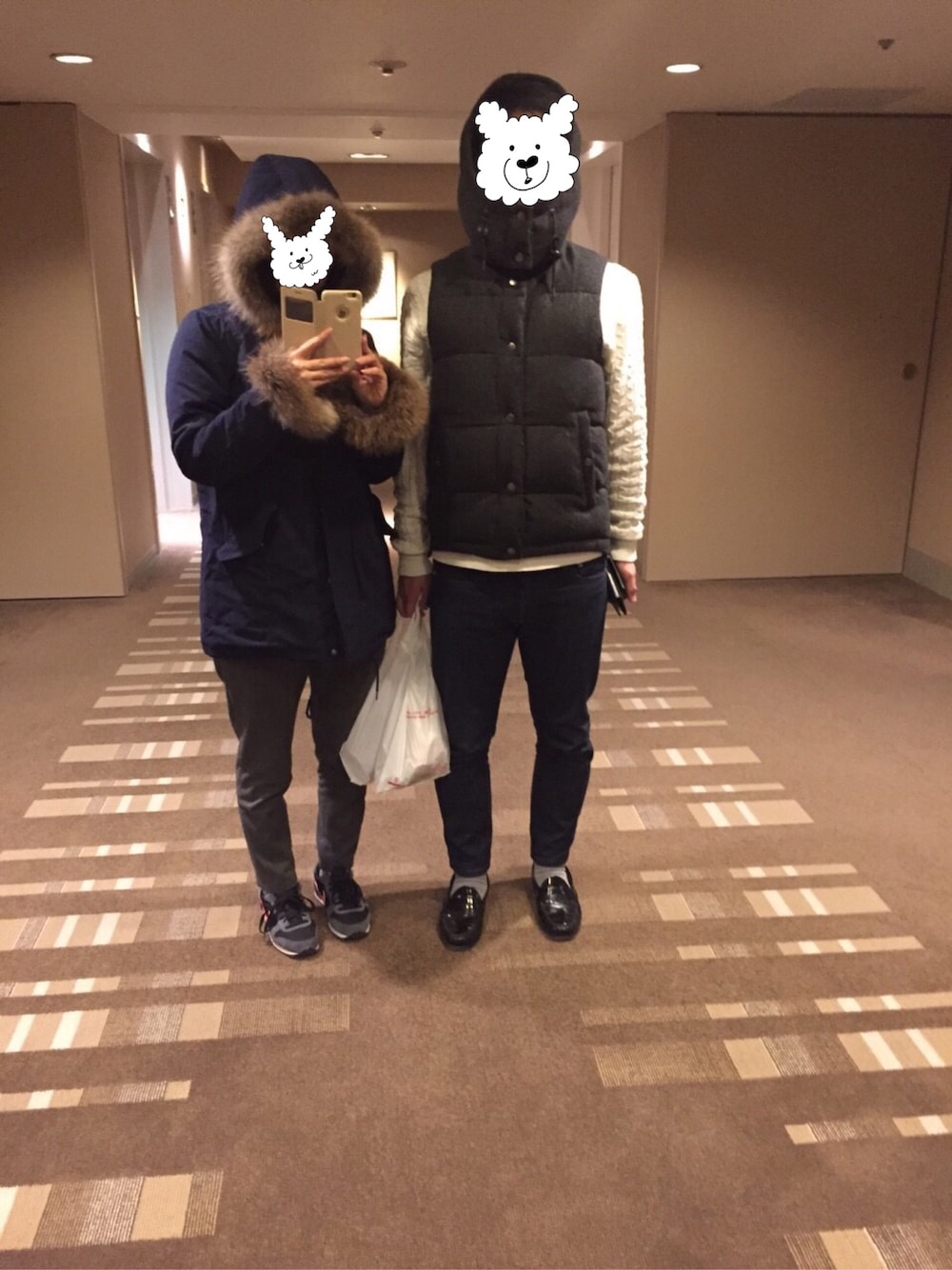 夜な夜な彼女とやよい軒へ変装 寒すぎてフード被って出陣!! 夜食を買いにコンビニへ 無事デザート確保(*´艸`)