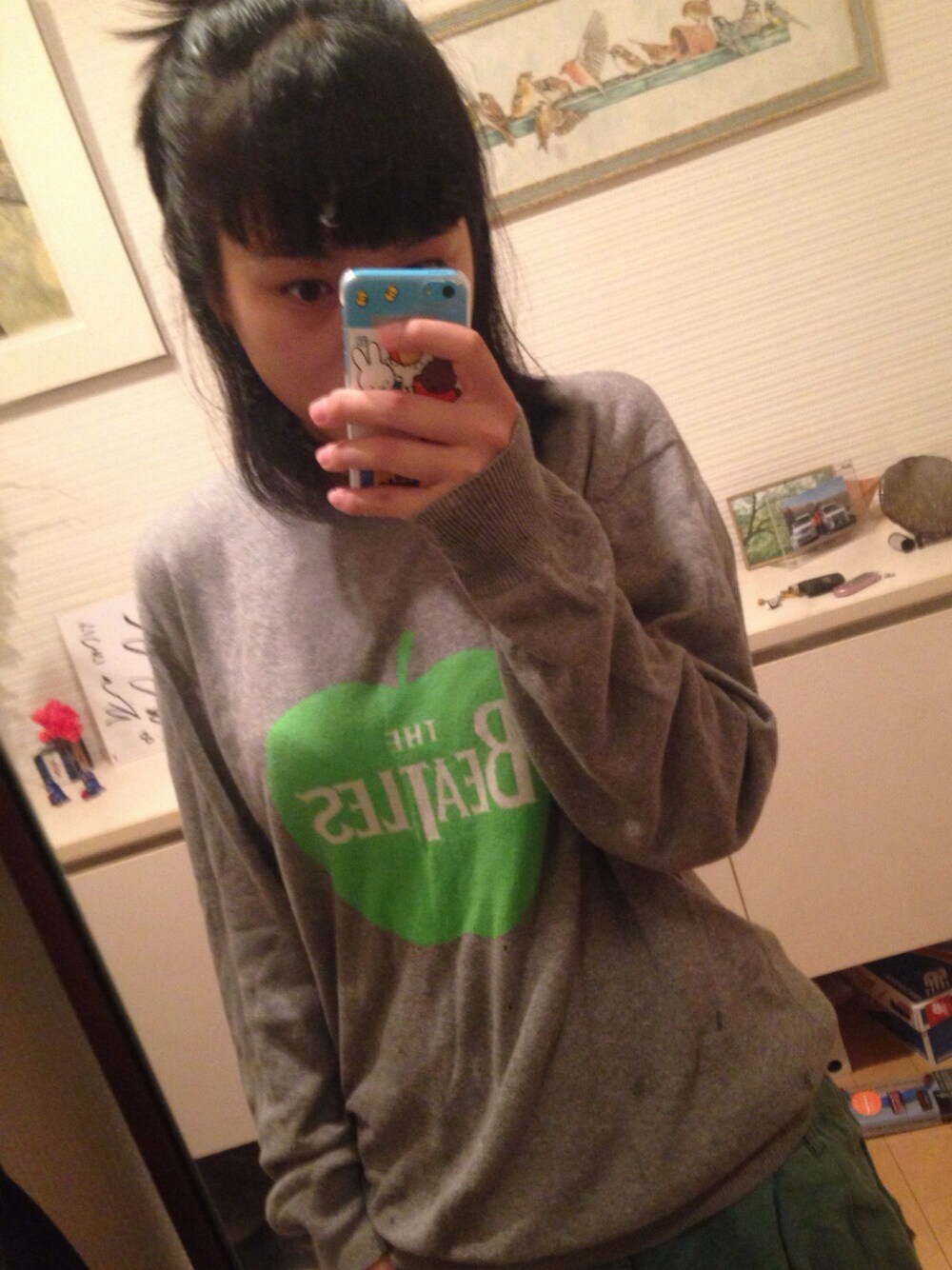ますみるくのニット/セーター「ザビートルズニット/グリーンアップルロゴ」を使ったコーディネート