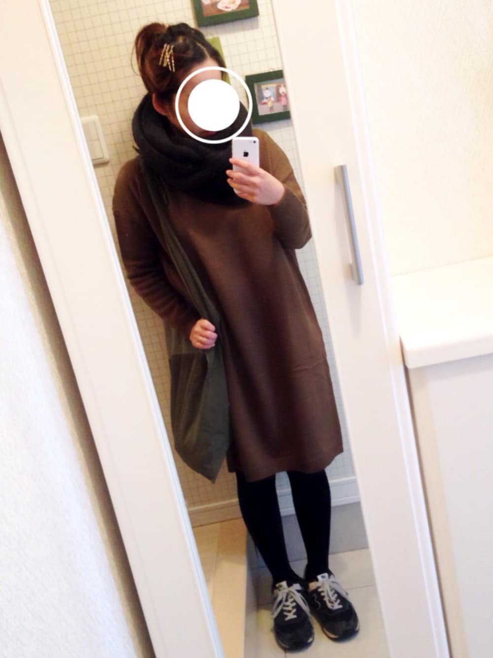 おもちのワンピース「クルーネックニットワンピース」を使ったコーディネート