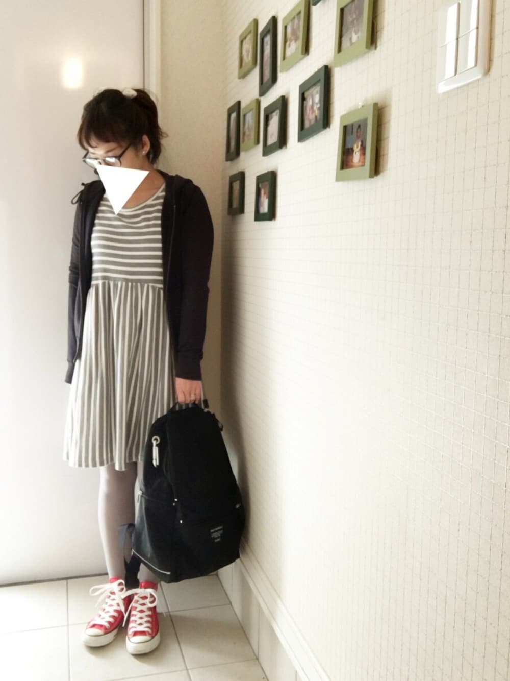 おはようございます(^^) 昨日は前日の疲れと花粉とでへろんへろんでした。 しましま着てたのに写真撮る元気なかった…( ´⍪⌂⍪`) 『しましまな日々』5日め* 今日はしましまワンピにコンバースで♡ では、みなさま良い1日を◡̈♥︎ 今日もお付き合いありがとございました♡
