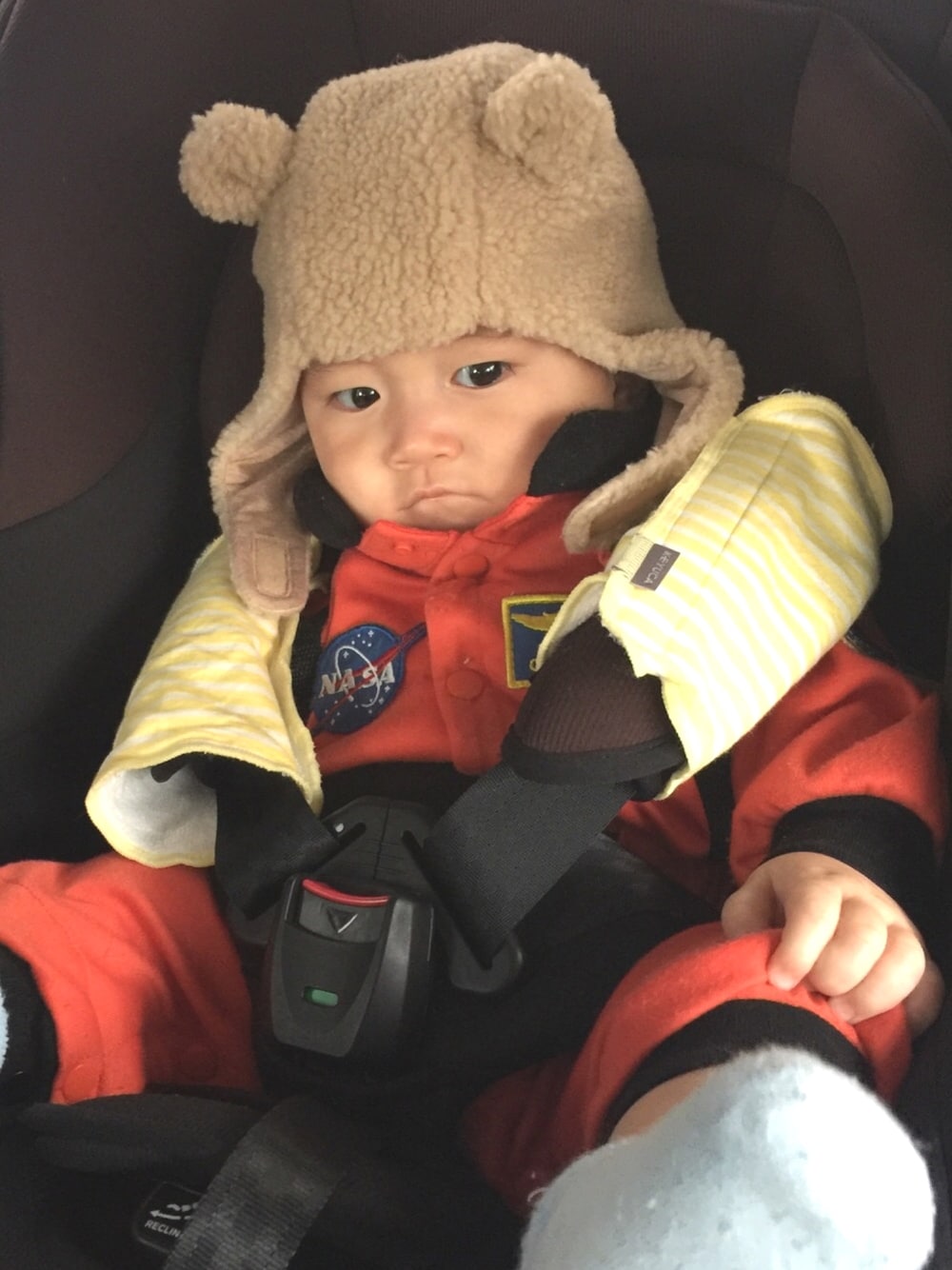 お土産でいただいたカバーオールはNASA公式だそう🌔 なれるか?宇宙飛行士🚀 親の遺伝子からして、かなり厳しい道のりでしょうな😂