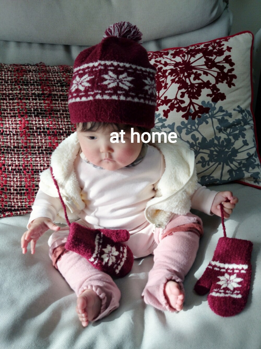 外は寒いけどおうちの中はぬくぬく(*^^*) 天気がいいから後でお散歩行こう♪ 帽子と手袋は無印で一目惚れして買ったもの。 手袋は大きいし舐めちゃうから今年は出番なしかな。