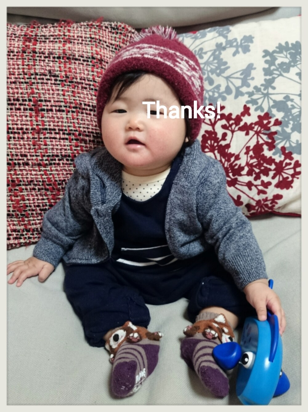 男の子っぽいね…。 手にもってるおもちゃは 最近ママの従姉からもらったクリスマスプレゼント♪