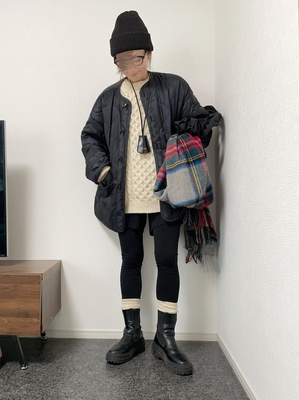 モノトーン 大きめニットにショートパンツ+レギンスブーツも好きなコーデです☺︎ いいね、お気に入り、フォルダin、新しくフォローして下さった方ありがとうございます☺︎
