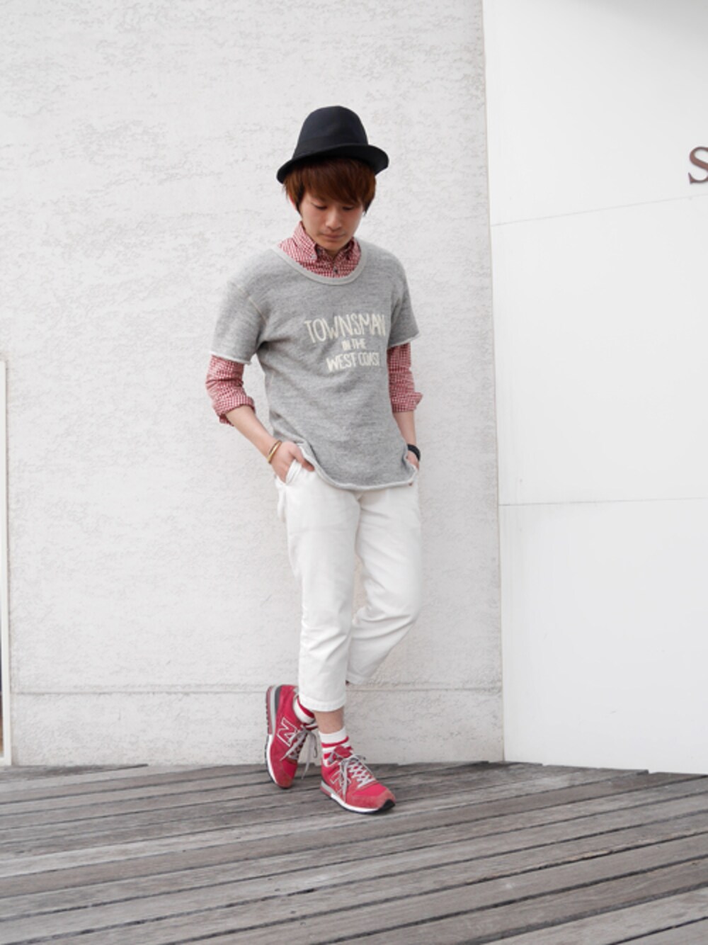 本日はレッド×ホワイトにしてみました。 MR.OLIVEのスウェットがややゆるめのシルエットなので ニット帽と迷いましたがハットでバランスをとっています。 このぐらいでも夜はまだ肌寒いですね。。。