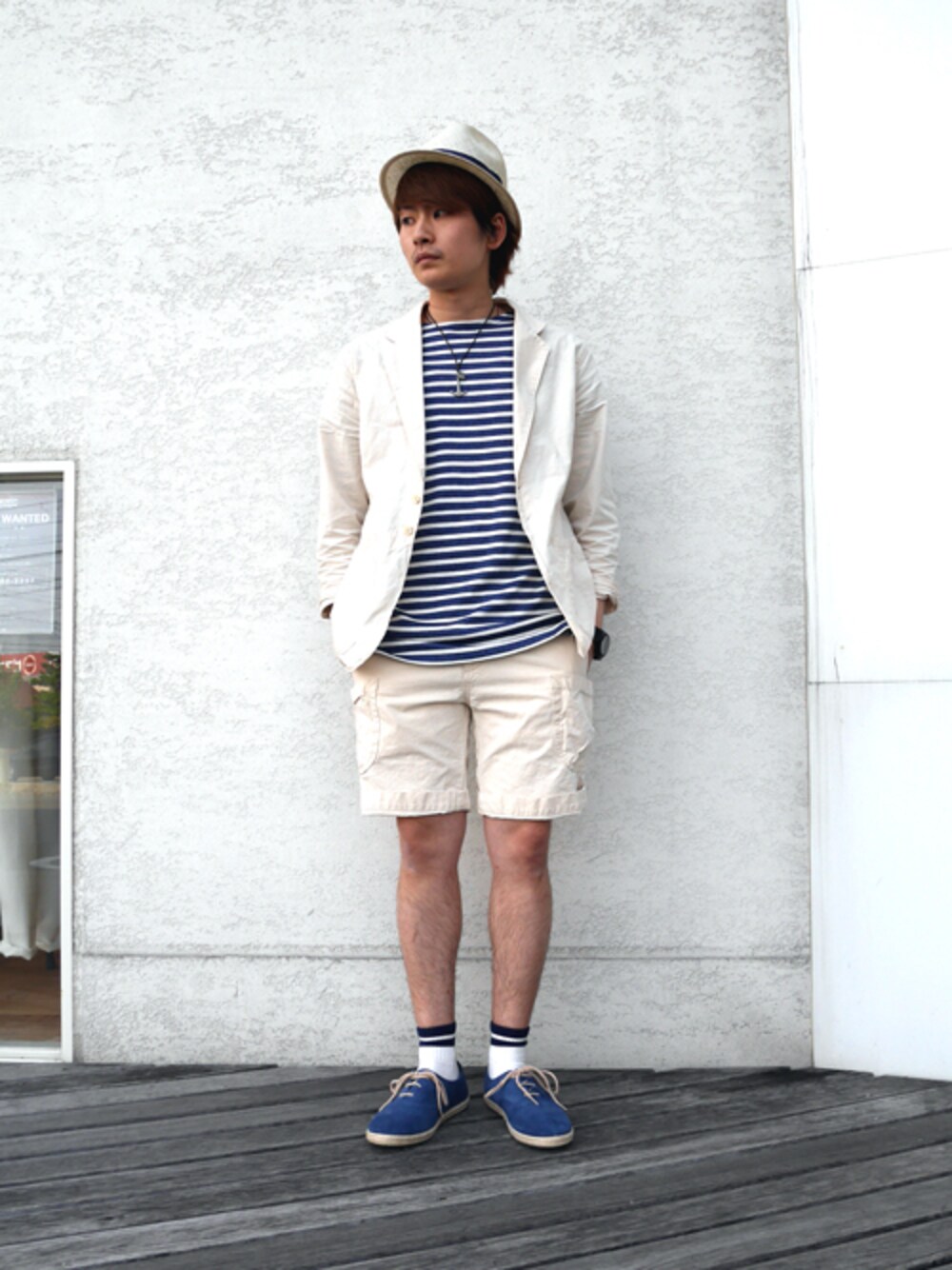 本日は「オールホワイト」をテーマにコーディネートしました。 オールホワイトと言いつつも・・・勇気がなくネイビーを差してしまいました。w ジャケットとショートパンツはセットアップかのような、絶妙なカラーバランスになりました。ラッキー♪