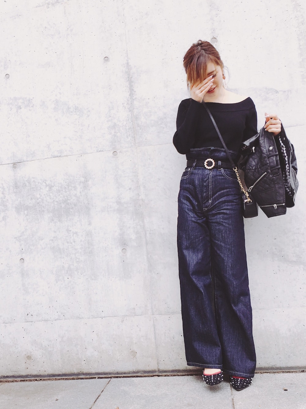 maaのニット/セーター「オフショルニットトップス」を使ったコーディネート