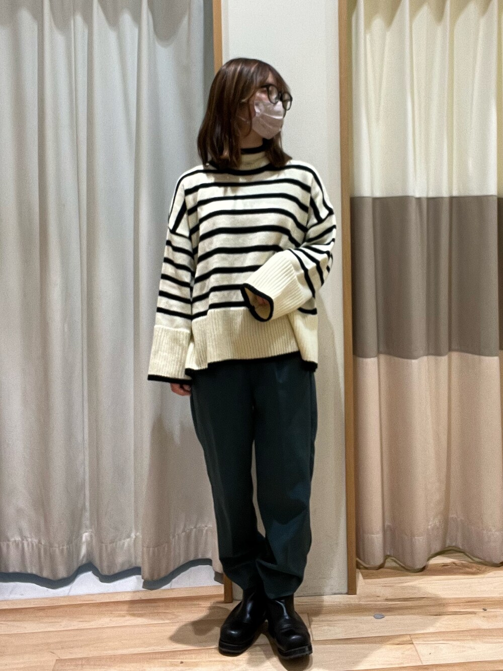 おはようございます- ̗̀ ☺︎ ̖́- いつもご覧いただきありがとうございます! 今回は久々の出勤コーデです!👜👓 ゆるっとしたボーダーニットは今年らしい1枚🐼 グリーンのスラックスと合わせるとカジュアルに なりすぎないトレンド感ある着こなしになるので オススメです! 丈はおしり上半分くらいなので手持ちのボトムスとも バランスが取りやすく、着回しの幅が広がりそうです💭 ┈┈┈┈┈┈┈┈┈┈┈┈┈┈┈┈┈┈┈┈ 〜お知らせ〜 当店では本日3日間限定で2buy10%off最終日と なっております✨ 冬物セール商品全品対象、春物新作商品も 2点以上で10%offに! しば。着用のセールアイテム全品2点以上でさらに 10%offと大変お買い得です💡´- 是非店頭でお待ちしております🐶