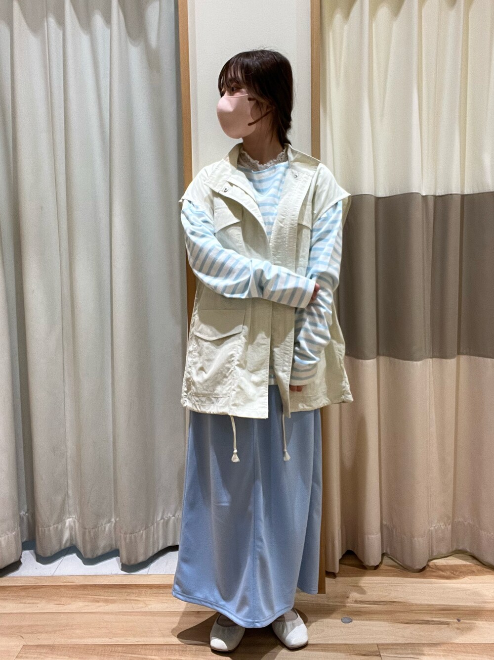 おはようございます- ̗̀ ☺︎ ̖́- いつもご覧いただきありがとうございます! 前回のコーデにミリタリーベストを レイヤードさせ、カジュアルさをプラス してみました✨ 裏地がない為、とても軽くサラッと 気軽に羽織れます🙆♀️ これからの時期は7分袖〜半袖にベストを 合わせたりすることもできるので ロングシーズン着回しできそうです👀 お尻が隠れるくらいの丈感なので、 体型カバーもできオススメです!