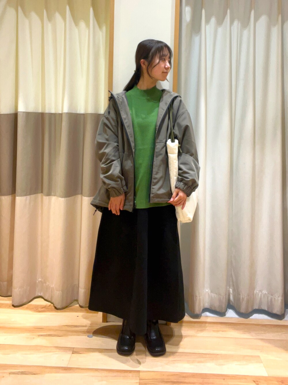 おはようございます- ̗̀ ☺︎ ̖́- いつもご覧いただきありがとうございます! モノトーン➕グリーンのカラーコーデ🕊💚 ハイネックニットは防寒性◎ 薄手で柔らかく着心地抜群です!✨ 今回はフレアスカートと合わせてキレイめに 寄せました😊 ※スカートは1つ外へ折っています! 📣 SamansaMos2では11/9~ 冬ノベルティフェアー開催しております⛄️🧣 ¥6000~(税込)で陶器で出来た小物入れ(クロシェ付き) ¥9000~(税込)でレザー素材のサコッシュ をプレゼント🎁 ※なくなり次第終了です! SamansaMos2blueでは、 ~11/15までの期間限定プライス商品も ご用意しております◎ しば。🐶着用のニットは11/15までの 期間限定プライスでお求めいただけます!!✨️ 是非ご来店お待ちしております🐶🚪