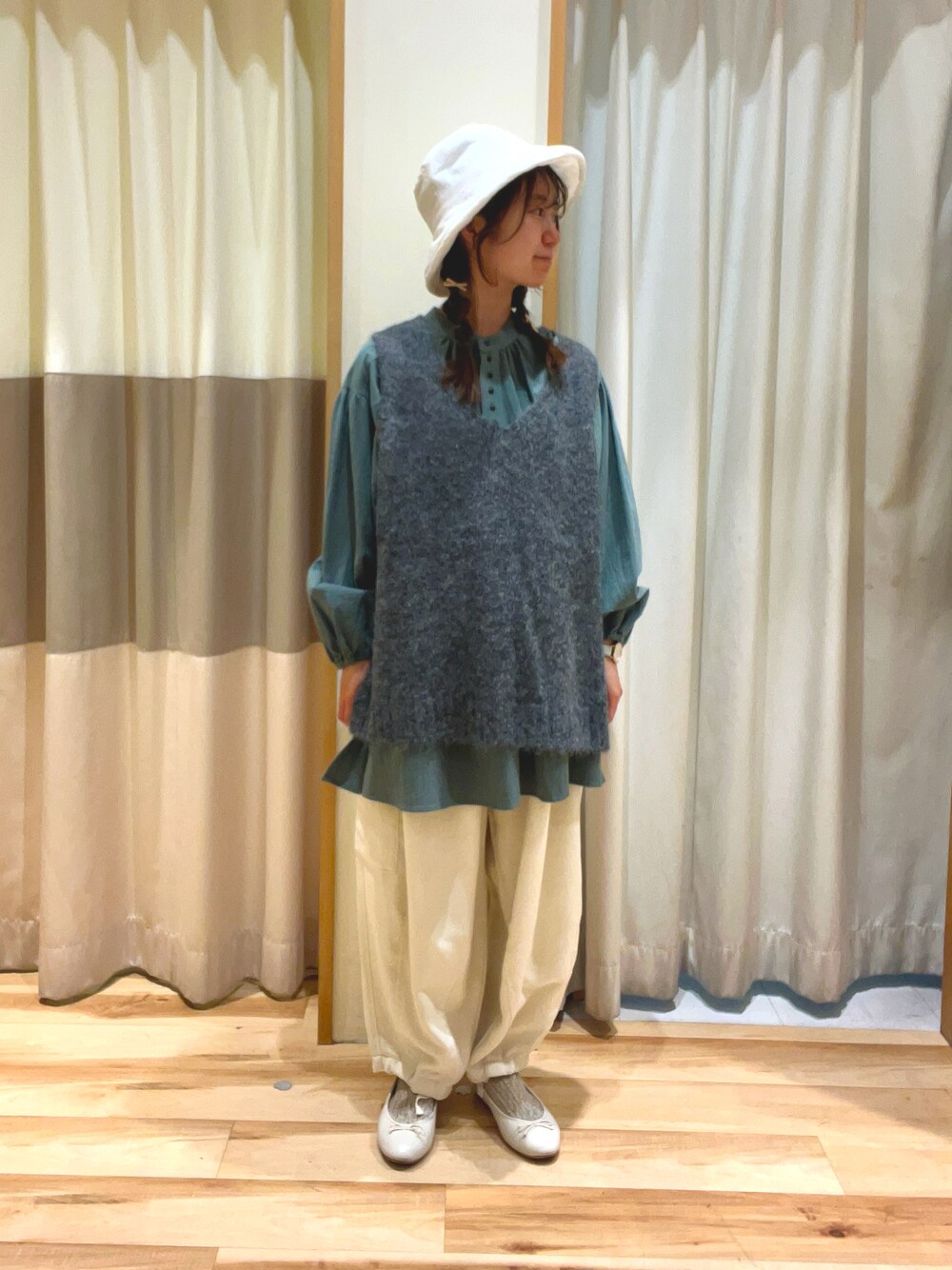 しば。のベスト「◎シャギーニットベスト」を使ったコーディネート
