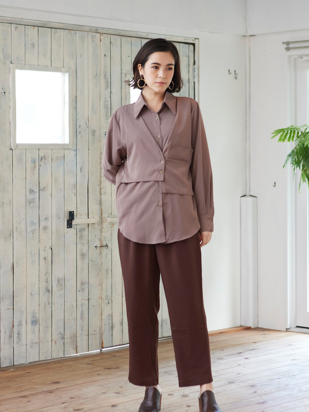 フロントにアシンメトリーのベストがドッキングされた長袖シャツ。 さらっとした素材感で、着心地抜群です。 『MATCH&more/(マッチアンドモア)』 トレンドエッセンスを加えながら着やすさを追求した肩肘張らずに楽に着れる商品を提案