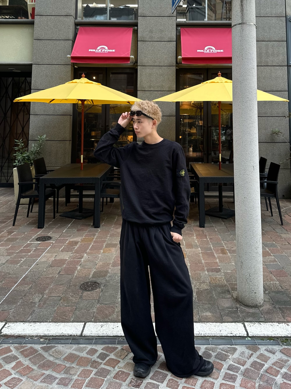 stoneislandを使ったブラックコーデ。アイテムもシンプルでチョー大人っぽくしてます